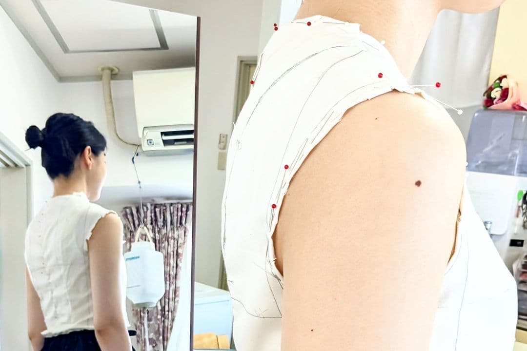 熟練した技術を持つ講師がデザインはそのままで体型だけ合わせる仮縫い修正を致します。